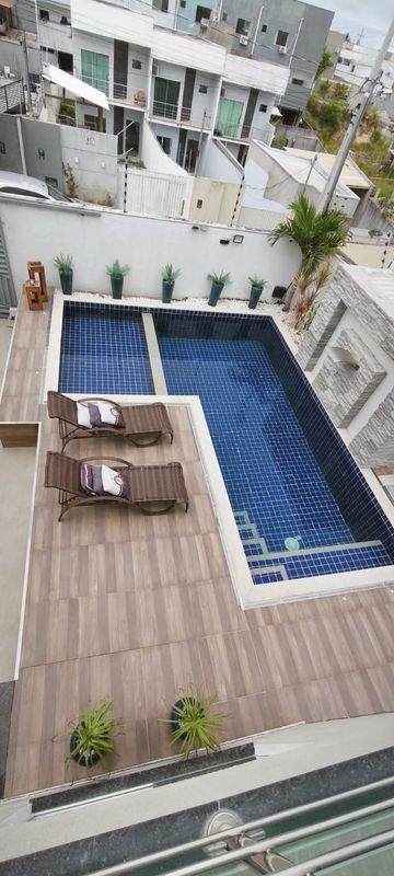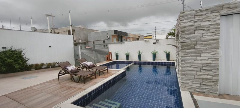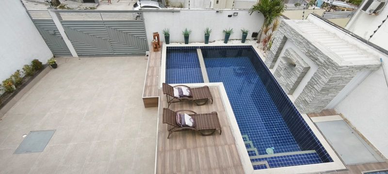Piscina Exclusiva: Com cascata e revestimento em pastilhas azul cobalto, ideal para os dias de sol da Bahia.