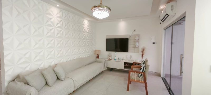 Acabamento de Alto Padrão: Piso em porcelanato polido em toda a casa e detalhes em revestimento 3D nas paredes.