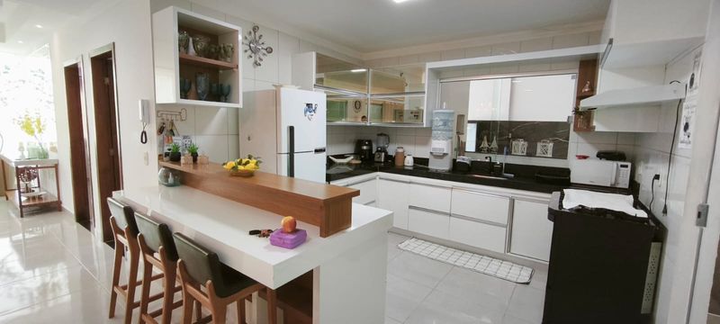 Cozinha Moderna: Planejada com bancadas em granito, armários sob medida e balanço para refeições rápidas, integrada à área social.